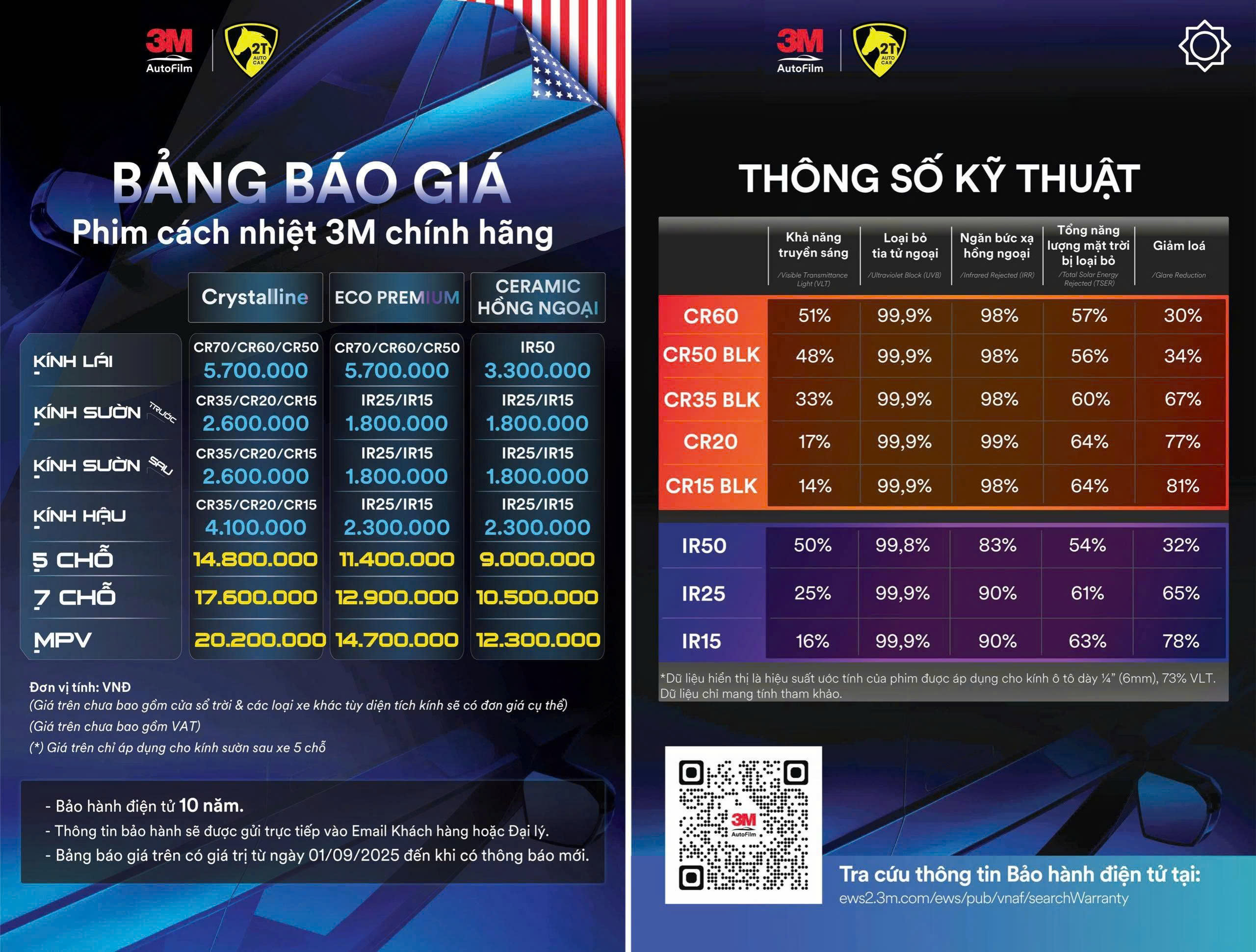 Phim cách nhiệt 3M CRYSTALLINE (5 chỗ)